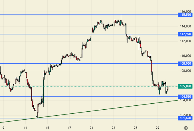 Продажа: нет. Кто в позиции от 114100, перенесите стоп на 113200. Цель: 90000 (60000).