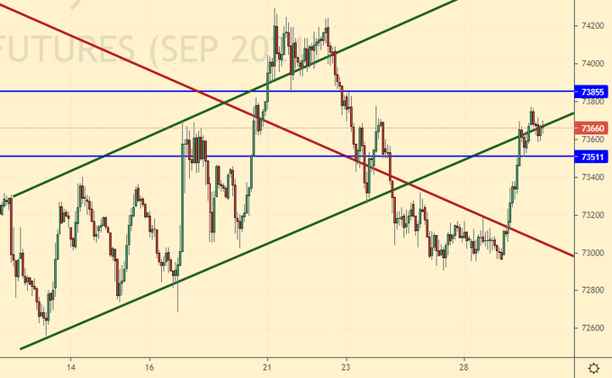 Покупка: при касании 73400. Стоп на 73100. Цель: 74900. Всех с профитом!