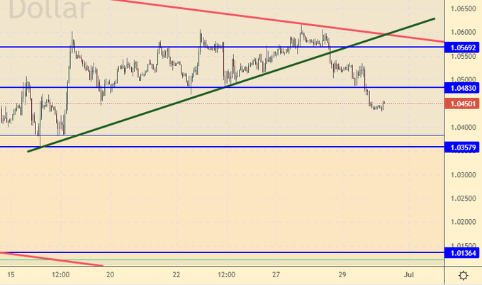 Продажа: нет. Кто в позиции от 1.0570, держите стоп на 1.0580. Цель: 0.9700.