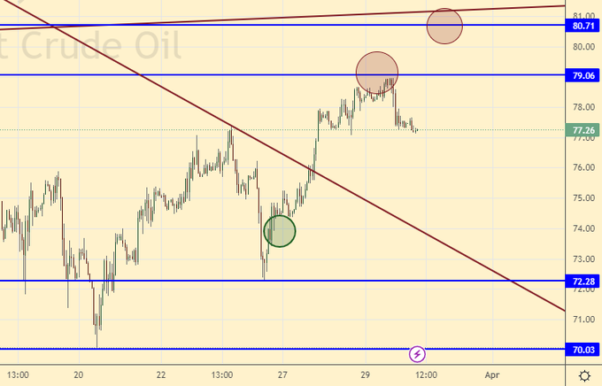 Покупка: нет. Кто в позиции от 75.60, перенесите стоп на 76.10. Цель: 80.00. (88.00).