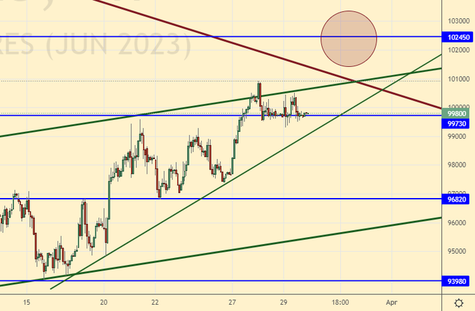 Продажа: сейчас и при подходе к 102000. Стоп: 103700. Цель: 80000.