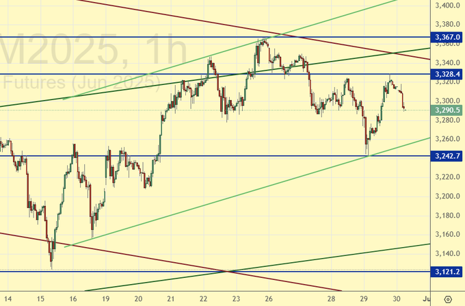 Продажа: возможна. Кто в уже позиции от 3366, держите стоп на 3343. Цель: 3000.