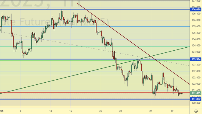 Покупка: нет. Кто в позиции от 101986, держите стоп на 100900. Цель: 111800 (114500).
