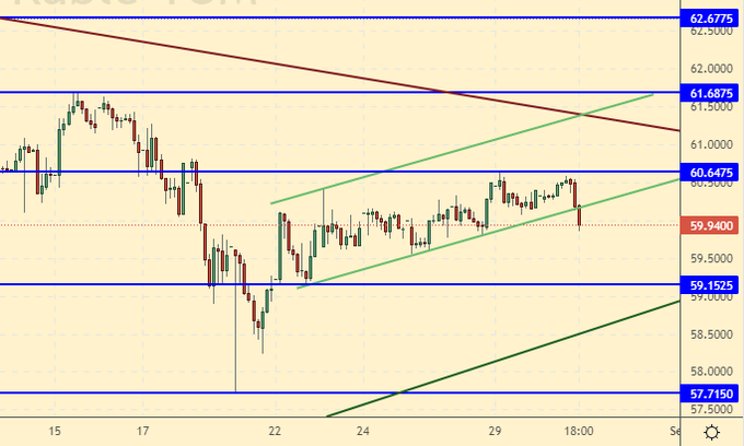 Продажа: нет. Кто в позиции от 59.00, 60.30 и 61.20, перенесите стоп на 60.80. Цель: 57.00 (46.00?!!!)