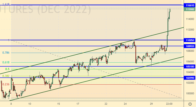 Покупка: думать при откате к 111000. Если вы вошли после роста выше 110000 зафиксируйте прибыль на текущих уровнях.