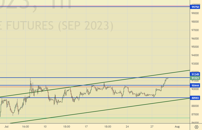 Покупка: после роста выше 91500. Стоп: 90800. Цель: 99750.