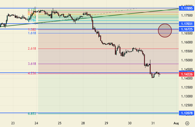 Продажа: при подъеме к 1.1700. Стоп: 1.1800. Цель: 1.1000?