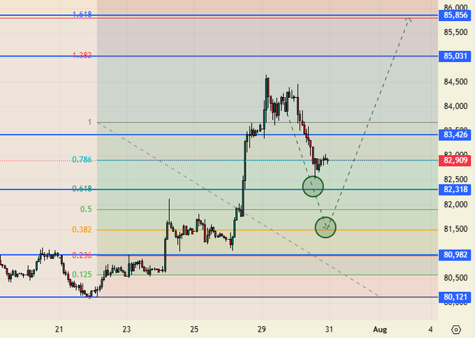 Покупка: при подходе к 82400. Стоп: 82100. Цель: 100000. Кто в позиции от 80248 и 82000, держите стоп на 80900. Цель: 100000.