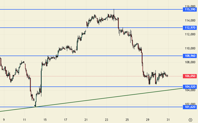 Продажа: нет. Кто в позиции от 114100, перенесите стоп на 112200. Цель: 90000 (60000).