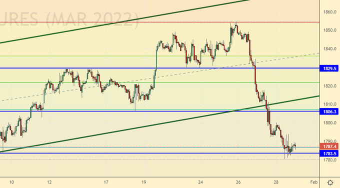 Медведи по золоту устроили показательную порку. Цены за двое суток упали на 70 долларов. Нельзя отрицать продолжение падения к 1650, но всё это выглядит крайне подозрительно. Нет ни одного фундаментального фактора на данный момент, который бы объяснил текущее падение. Перспектива роста ставки в США? А будет ли она поднята на самом деле? На сколько?