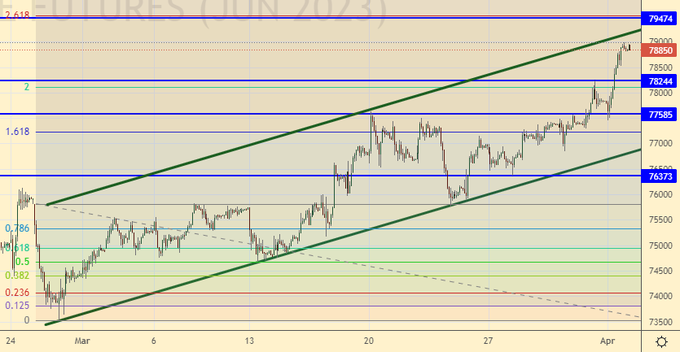 Мы придем к 80.00. Рубль никак не реагирует на рост цен на нефть, что является для него плохой новостью. Стоит признать, что мы становимся свидетелями того, как рубль становится региональной валютой с непонятной привязкой к валютам стран с большим объемом ВВП. Если мы уходим от доллара, то как нам понять сколько стоит рубль? Вероятно будем его оценивать время от времени через юань.