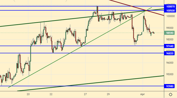 Продажа: нет. Кто в позиции от 100000, перенесите стоп на 100700. Цель: 80000.