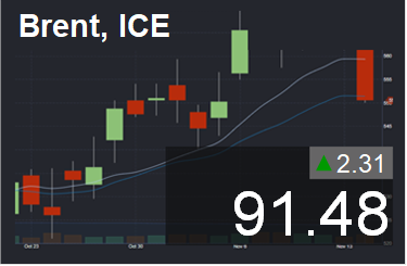 Цена в долларах за баррель. Для пересчета в доллары за тонну нефти марки Brent, необходимо цену умножить на 7,59.