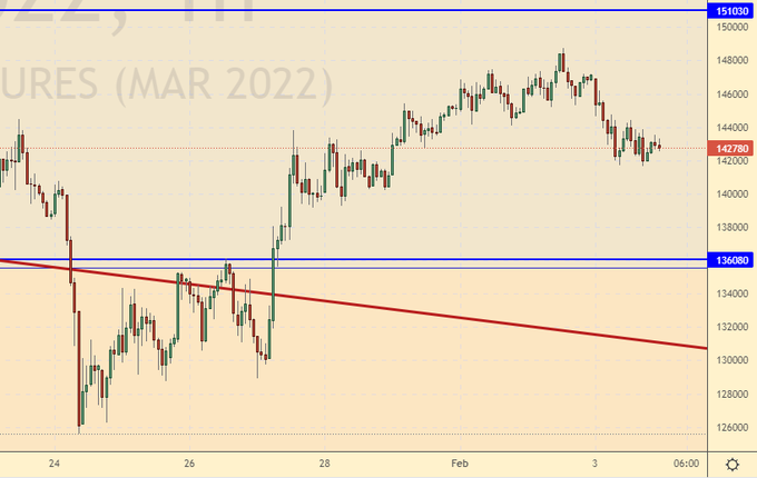 Продажа: нет. Кто в позиции от 147000, перенесите стоп на 148000. Цель: 105000.
