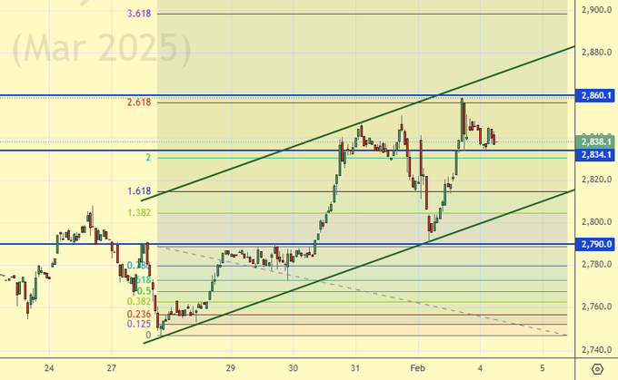 Итак, мы все часть шоу товарища Т. Сегодня он делает так, завтра он делает по-другому. Все бесятся. Прелесть технического анализа в том, что не надо читать новости. А кто не может не читать, тот знает, что введение взаимных пошлин с Канадой приостановлено на 30 дней. Вот ведь как… Пока мы выше 75.00 шансы на продолжение роста есть. При этом надо отметить, учитывая резкую смену настроений в понедельник, нельзя исключать попытки пробиться к 70.00.
