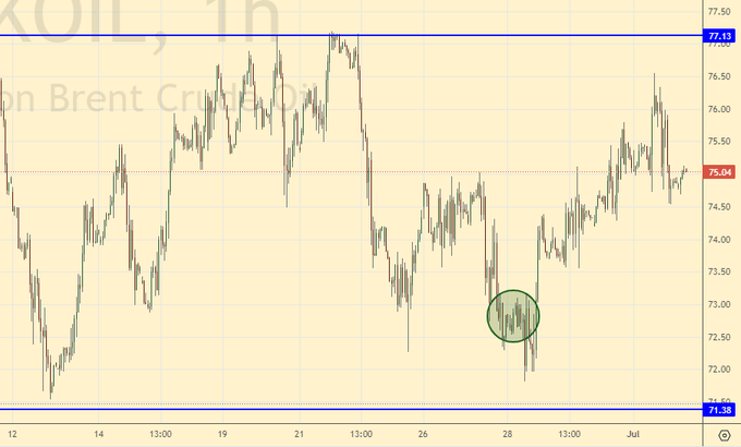 Покупка: нет. Кто в позиции от 72.30, перенесите стоп на 73.70. Цель: 80.50.