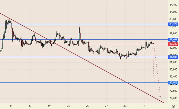 Покупка: в случае роста выше 82500. Стоп: 81800. Цель: 120000?!