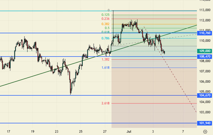 Продажа: нет. Кто в позиции от 111410, перенесите стоп на 111800. Цель: 95000.