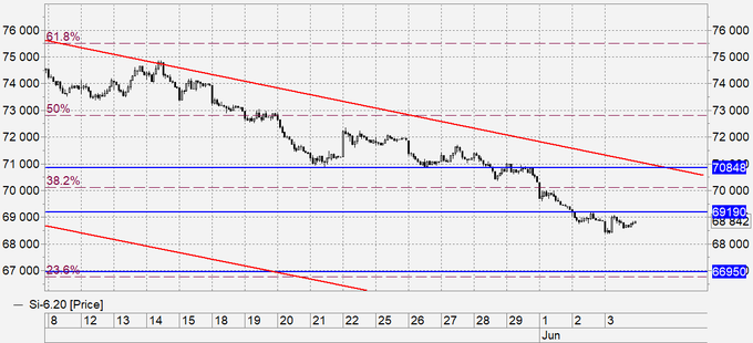 Продажа: нет. Кто в позиции от 70800, держите стоп на 69300. Цель: 67000.