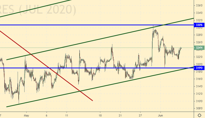 Ждем появления статей о том, что цены вырастут, так как огромного урожая кукурузы на всех не хватит, мол, потому, что спрос растет вслед за производством. Да, это так, но в этих прикидках надо учитывать, что экономика в ряде стран за второй квартал упадет на 30%, поэтому со спросом на кормовые культуры будут проблемы. Будем кушать меньше мяса.