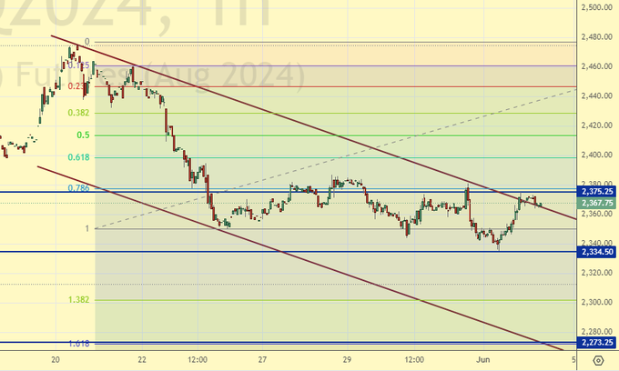 Нашли для себя поддержку в неожиданном месте на 2334. Что это? Какой-то код? Ситуация такова, что мы вынуждены подозревать разворот. Будем держать шорт, но ситуация развивается для продавцов по нехорошему сценарию.