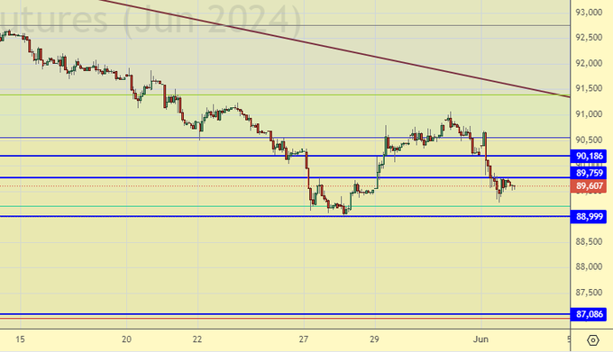 Продажа: нет. Кто в позиции от 90.14, перенесите стоп на 90.10. Цель: 86.00.