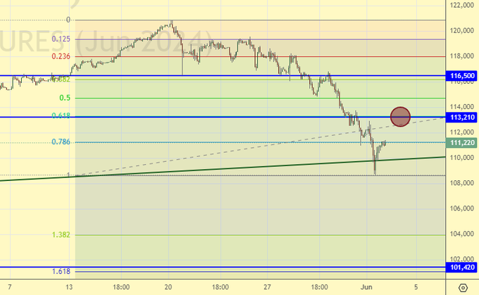 Продажа: при подходе к 113200. Стоп: 114200. Цель: 101500.
