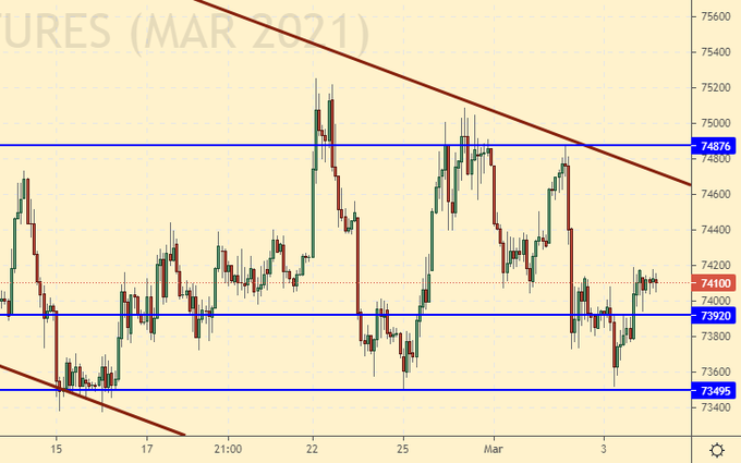 Покупка: после роста выше 75000. Стоп: 74300. Цель: 80000 (может быть пересмотрена). Считайте риски!
