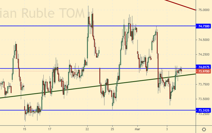 Рубль не так и плох. Мы продолжаем находиться ниже 75.00, что заставляет нас рассуждать о возможном укреплении национальной валюты. Народ не слишком торопится покупать доллары. Многое будет зависеть в этом году от экономических результатов США в первом квартале. Если они окажутся ниже ожиданий, напишем проще: намеков на рост ВВП не будет, то у доллара могут начаться проблемы.