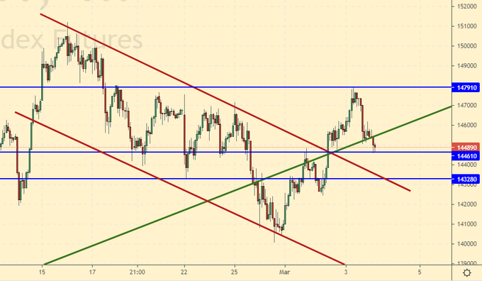 Покупка: нет. Кто в позиции от 146210, держите стоп на 143800. Цель: 165000.