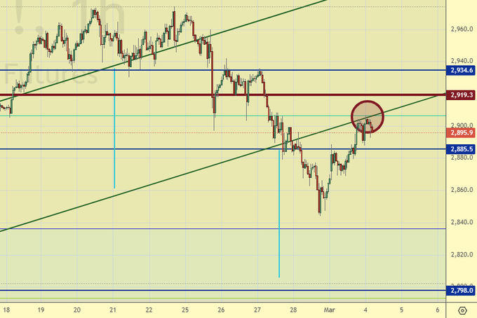 «Кто уже в шортах может добавить от 2900», – писали мы вчера. И вот мы на 2900 и да, надо продать. Что будет? Если весна окажется яркой, то шизики нанесут экономике непоправимый урон, так как они вспомнят, что они еще и агрессивные. Пока еще есть надежда, что разум возобладает. Если мы не увидим стремления к миру, то золото отправится на 15000, для начала.