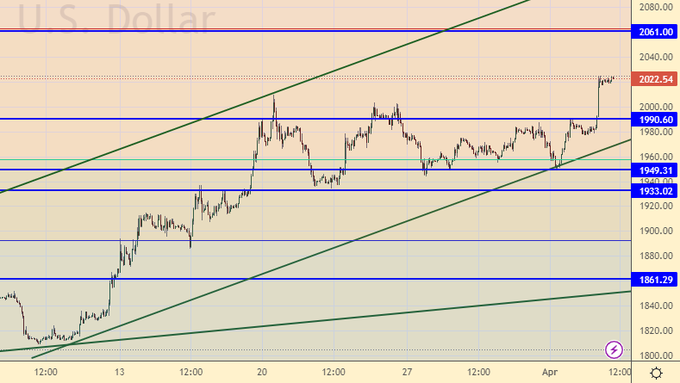 «Если ценам удастся пройти выше 2010, то нас ждет рост, причем с ускорением», – вот фраза из вчерашнего прогноза. Видим, что так и произошло. Нас ждет 2060 на фоне сокращения новых рабочих мест в экономике США. Рынок пытается поймать начало негативной тенденции на рынке труда под действием высоких ставок из-за этого мы видим столь эмоциональные движения.