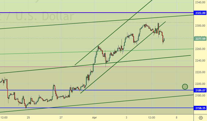 Покупка: при откате к 2180. Стоп: 2140. Цель: 2400.