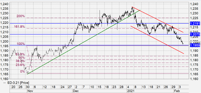 Наиболее вероятно: отскок вверх от 1.1960 к 1.2060.