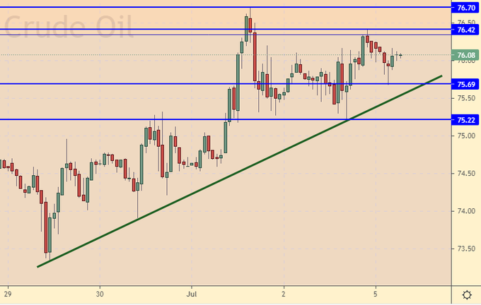 Покупка: нет. кто в позиции от 72.80, перенесите стоп на 72.75. Цель: 76.20.
