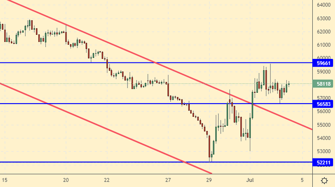 Покупка: при откате к 56000. Стоп: 54400. Цель: 80000.