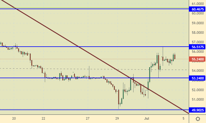 Покупка: при откате к 52.50. Стоп: 51.00. Цель: 80.00.