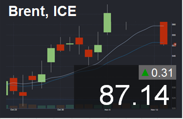 Цена в долларах за баррель. Для пересчета в доллары за тонну нефти марки Brent, необходимо цену умножить на 7,59.