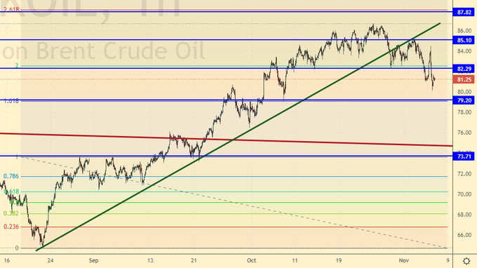 Продажа: нет. Кто в позиции от 83.00, 84.00 и 85.00, перенесите стоп на 85.10. Цель: 76.00.