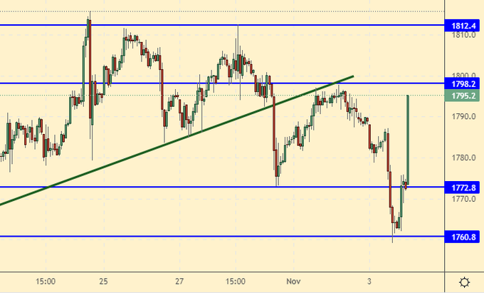 Ага, ФРС все-таки начала чесаться. Г-н Пауэлл объявил о сокращении скупки активов на 15 млрд. в ноябре и 15 млрд. в декабре. Если всё пойдет по плану, то не видать нам роста процентной ставки раньше июня следующего года. А это еще долгих 7 – 8 месяцев. А значит, инфляция может разогнаться еще сильнее, а значит, поводов для падения на рынке золота не просматривается.