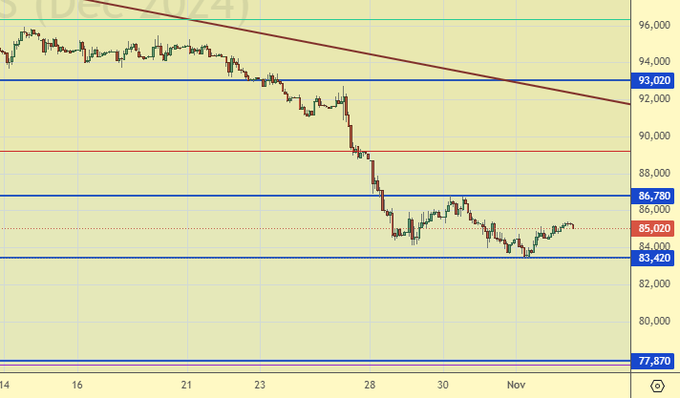 Продажа: при подходе к 89400. Стоп: 89800. Цель: 80000 (70000). Кто в позиции от 84900, держите стоп на 85200. Цель: 78000.