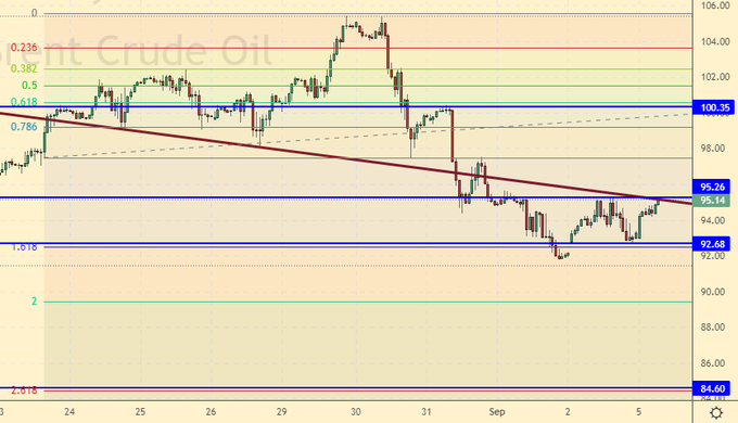 Продажа: при подъеме к 98.00. Стоп: 103.00. Цель: 85.10. Кто в позиции от 94.40, держите стоп на 103.00. Цель: 85.00. Считайте риски.