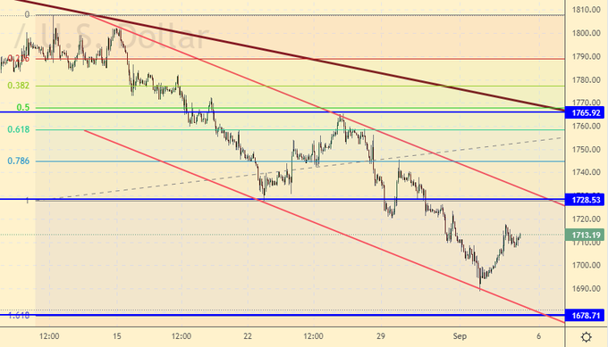 Продажа: при подходе к 1730. Стоп: 1742. Цель: 1600. Кто в позиции от 1800, держите стоп на 1742. Цель: 1600.