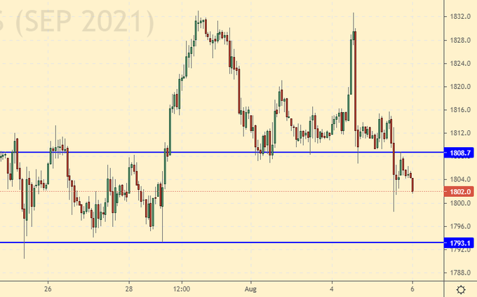 Видим попытки убедить толпу в том, что надо ставить на доллар. На самом деле это пока большой вопрос, но если сегодня вечером мы увидим из статистики признаки оздоровления рынка труда в США, то падение к 1760 будет возможно.
