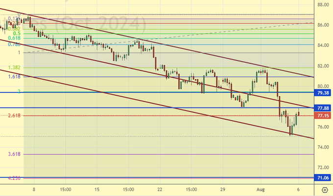 Продажа: сейчас (77.15). Стоп: 77.98. Цель: 71.15.
