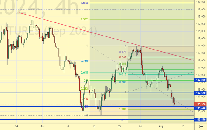 Продажа: нет. Кто в позиции от 114100, перенесите стоп на 110400. Цель: 96600.