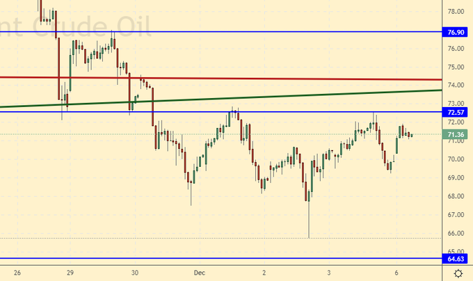 Утром понедельника котировки пытаются восстановиться. В случае роста выше 73.00 мы можем рассчитывать на движение к 76.00. Если данный ход состоится, то им можно будет воспользоваться для продаж. Если ценам так и не удастся сегодня подняться выше 72.50, то это может привести к продолжению падения, целью которого будет уровень 60.00.