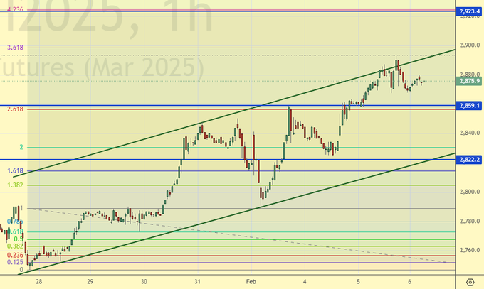 Подождем откат к 2820. Текущий рост в целом укладывается в общую техническую картину, однако, постановка позиций с текущих уровней не имеет большого потенциала для взятия прибыли.