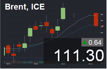 Цена в долларах за баррель. Для пересчета в доллары за тонну нефти марки Brent, необходимо цену умножить на 7,59.