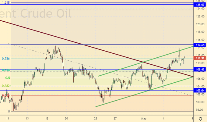 Рынок остался недоволен увеличением добычи нефти со стороны ОПЕК+ на 432 тыс. баррелей в сутки с июня. Цены поднимались к 115.00. Нельзя исключать роста к 125.00.
